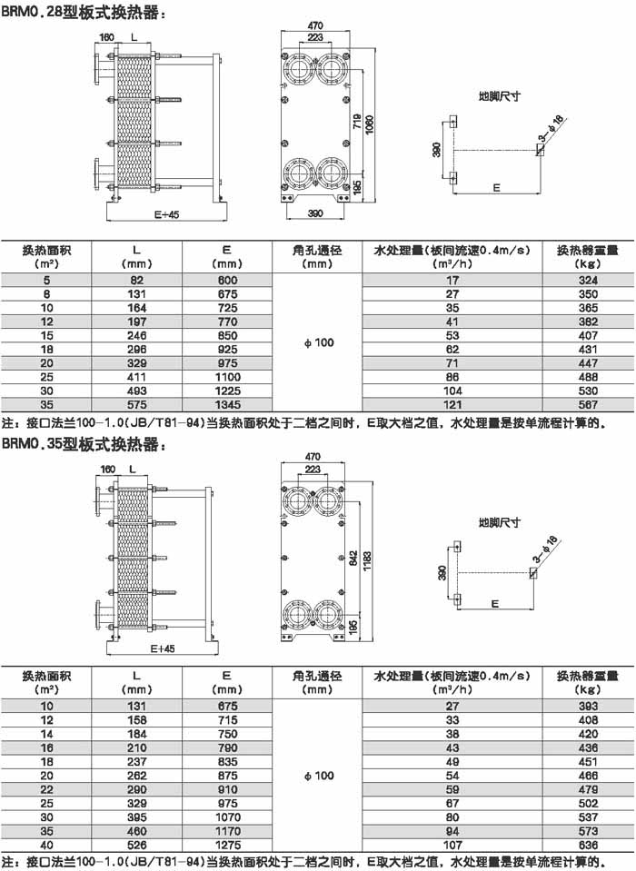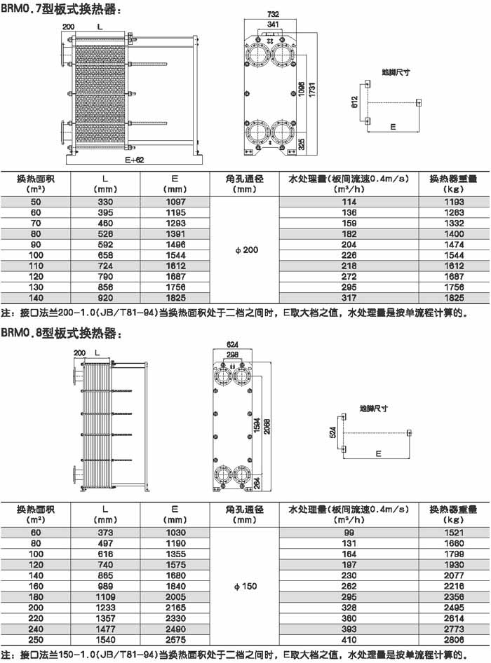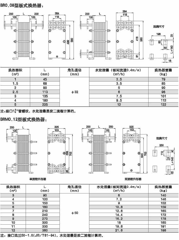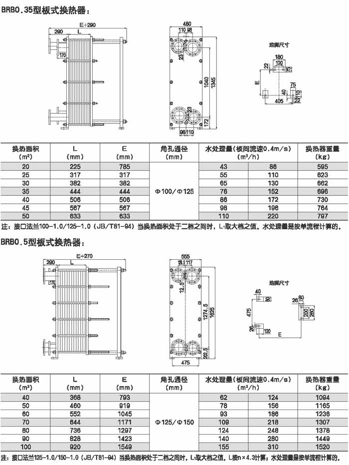 BRMO.0是指單片換熱板片的有效換熱面積為0.g平方米,其它型號的意義相同。選擇某種型號采用不同數(shù)量的換熱板片就可組裝成所需換熱面積的換熱器。