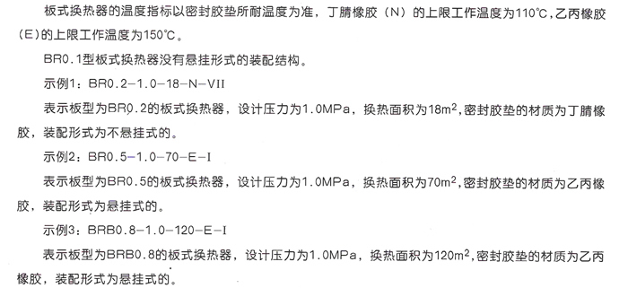 我公司生產(chǎn)的板式換熱器按照 GB16409-1996 《板式換熱器》進行設計、制造和檢驗,代號也按其標準規(guī)定來表示。